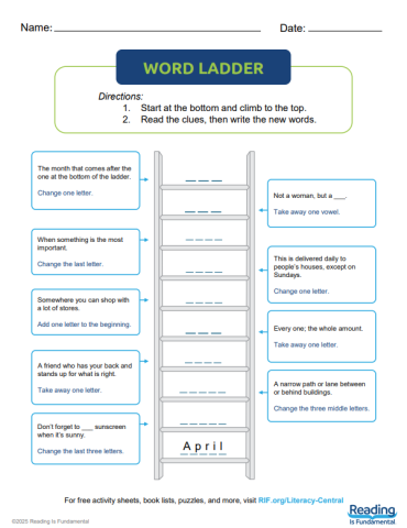 Word ladders help students see that words can be changed by adding or deleting letters. Use this activity to improve students' vocabulary, spelling, and phonics skills!