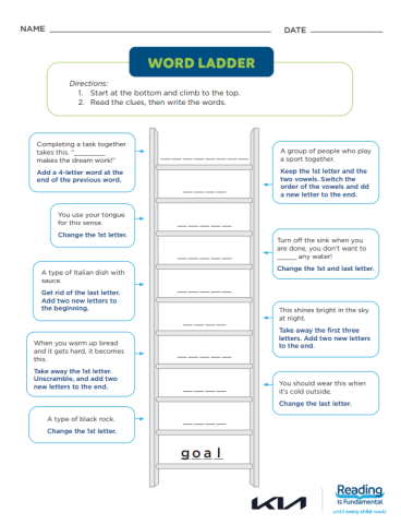 Word ladders help students see that words can be changed by adding or deleting letters. Use this activity to improve students' vocabulary, spelling, and phonics skills!